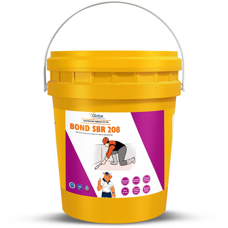 Bond SBR 208 is a milky-white, Styrene Butadiene rubber emulsion, produced from styrene and butadiene. It is specially designed for use as a bonding agent in liquid consistency. It is used for repair of spalled concrete – floors, coloumns, beams, chhajas, slabs. Waterproofing of toilet & bathrooms, small terraces etc. It bonds strongly to old & new concrete and to plaster. It reduces shrinkage, prevents cracking & improves abrasion resistance.