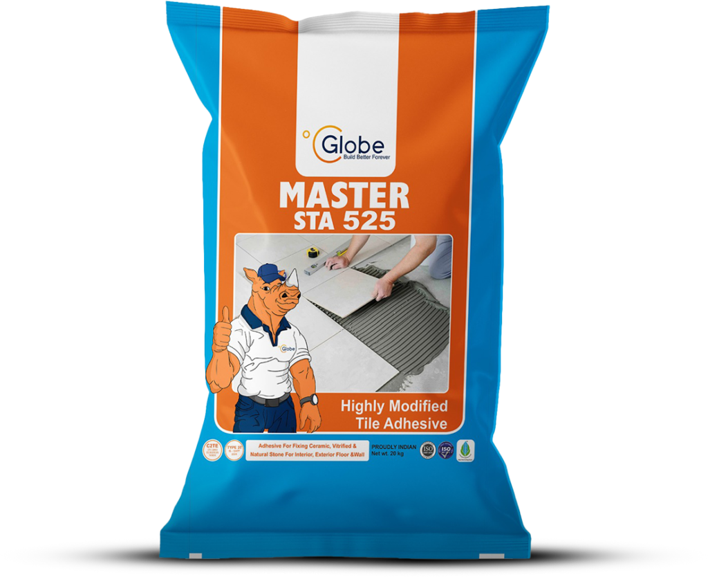 MASTER STA 525 is a highly polymer modified tile adhesive specially formulated for the installation of large format vitrified, porcelain , marble , granite & natural stone with low water absorption rate for both vertical and horizontal application on internal as well as external use.